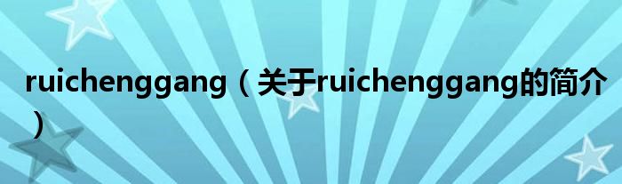 本文關于ruichenggang的簡介就講解完畢,希望對大家有所幫助。