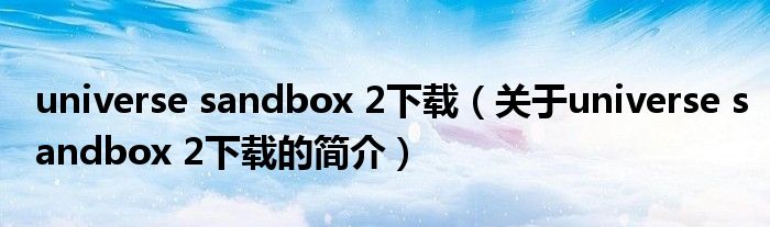 本文關(guān)于universe sandbox 2下載的簡介就講解完畢,希望對(duì)大家有所幫助。