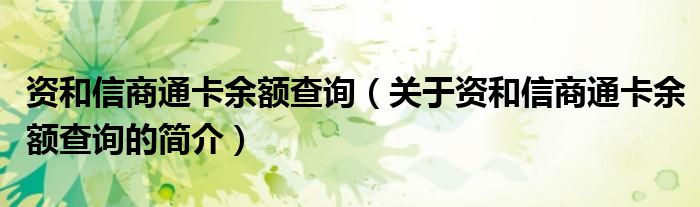 大家好,資和信商通卡余額查詢,關于資和信商通卡余額查詢的簡介很多人還不知道,現在讓我們一起來看看吧!