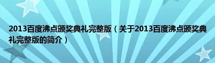 本文關于2013百度沸點頒獎典禮完整版的簡介就講解完畢,希望對大家有所幫助。