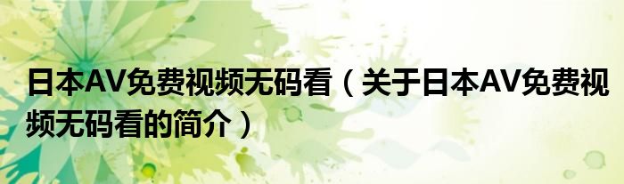 本文關(guān)于日本AV免費(fèi)視頻無(wú)碼看的簡(jiǎn)介就講解完畢,希望對(duì)大家有所幫助。