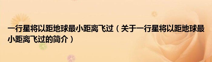 本文關(guān)于一行星將以距地球最小距離飛過(guò)的簡(jiǎn)介就講解完畢,希望對(duì)大家有所幫助。