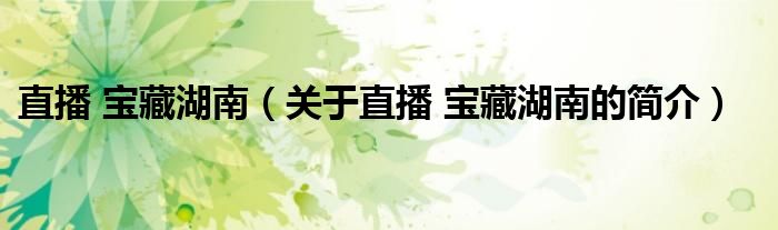 大家好,直播 寶藏湖南,關于直播 寶藏湖南的簡介很多人還不知道,現在讓我們一起來看看吧!
