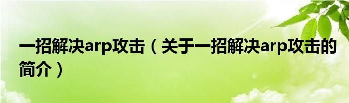 大家好,一招解決arp攻擊,關(guān)于一招解決arp攻擊的簡介很多人還不知道,現(xiàn)在讓我們一起來看看吧!