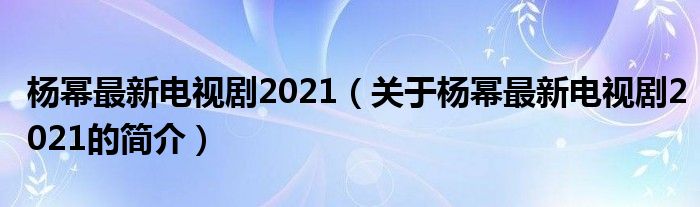 本文關于楊冪最新電視劇2021的簡介就講解完畢,希望對大家有所幫助。