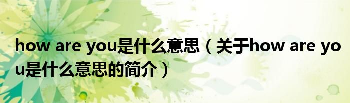 本文關于how are you是什么意思的簡介就講解完畢,希望對大家有所幫助。