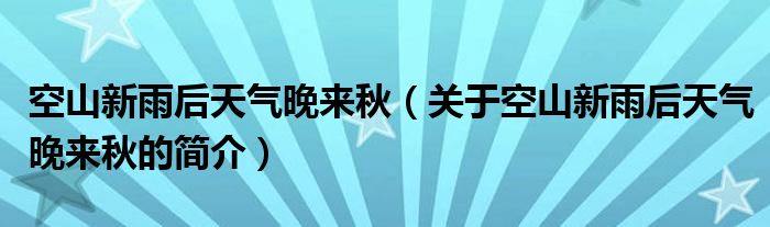 本文關(guān)于空山新雨后天氣晚來秋的簡介就講解完畢,希望對(duì)大家有所幫助。