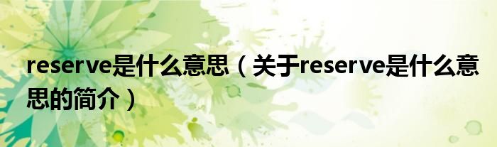 大家好,reserve是什么意思,關于reserve是什么意思的簡介很多人還不知道,現在讓我們一起來看看吧!