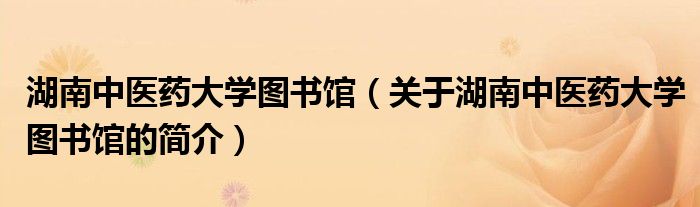 本文關于湖南中醫藥大學圖書館的簡介就講解完畢,希望對大家有所幫助。