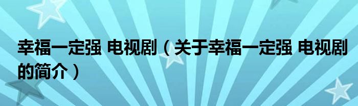 本文關于幸福一定強 電視劇的簡介就講解完畢,希望對大家有所幫助。