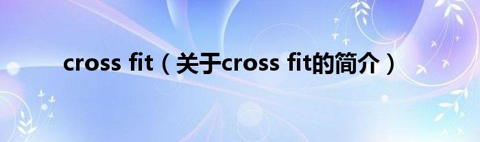 本文關(guān)于cross fit的簡介就講解完畢,希望對(duì)大家有所幫助。