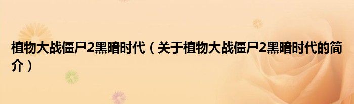 本文關于植物大戰僵尸2黑暗時代的簡介就講解完畢,希望對大家有所幫助。
