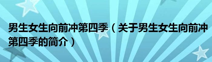 大家好,男生女生向前沖第四季,關(guān)于男生女生向前沖第四季的簡介很多人還不知道,現(xiàn)在讓我們一起來看看吧!