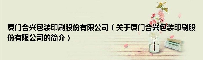 本文關于廈門合興包裝印刷股份有限公司的簡介就講解完畢,希望對大家有所幫助。