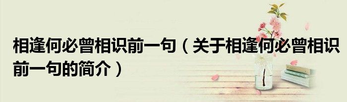 本文關(guān)于相逢何必曾相識(shí)前一句的簡(jiǎn)介就講解完畢,希望對(duì)大家有所幫助。