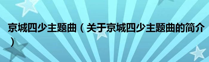 本文關于京城四少主題曲的簡介就講解完畢,希望對大家有所幫助。