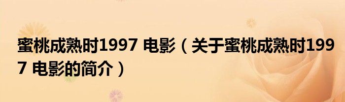 本文關于蜜桃成熟時1997 電影的簡介就講解完畢,希望對大家有所幫助。