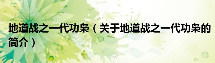 本文關(guān)于地道戰(zhàn)之一代功梟的簡(jiǎn)介就講解完畢,希望對(duì)大家有所幫助。