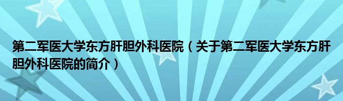 大家好,第二軍醫(yī)大學(xué)東方肝膽外科醫(yī)院,關(guān)于第二軍醫(yī)大學(xué)東方肝膽外科醫(yī)院的簡(jiǎn)介很多人還不知道,現(xiàn)在讓我們一起來看看吧!