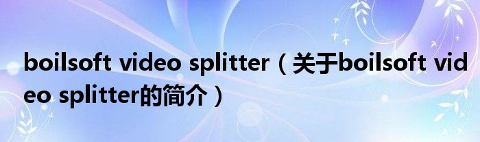 大家好,boilsoft video splitter,關于boilsoft video splitter的簡介很多人還不知道,現(xiàn)在讓我們一起來看看吧!