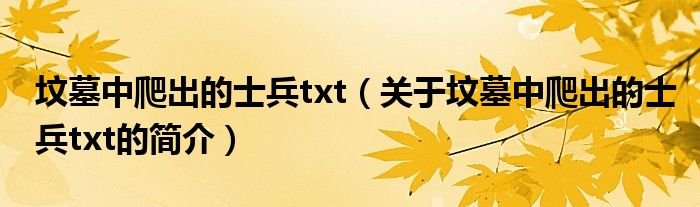 大家好,墳墓中爬出的士兵txt,關于墳墓中爬出的士兵txt的簡介很多人還不知道,現在讓我們一起來看看吧!