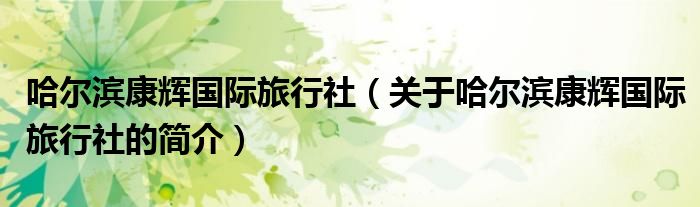 大家好,哈爾濱康輝國際旅行社,關于哈爾濱康輝國際旅行社的簡介很多人還不知道,現在讓我們一起來看看吧!
