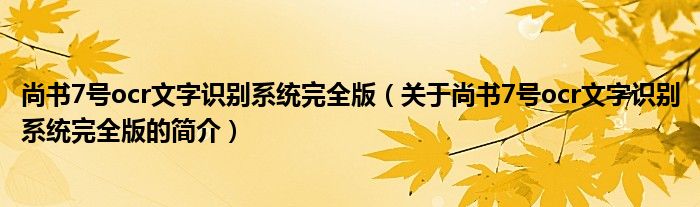 本文關于尚書7號ocr文字識別系統完全版的簡介就講解完畢,希望對大家有所幫助。
