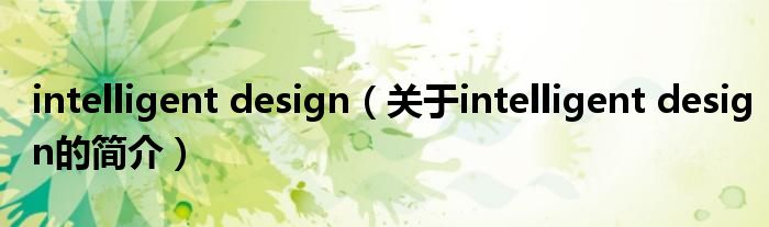 大家好,intelligent design,關于intelligent design的簡介很多人還不知道,現在讓我們一起來看看吧!
