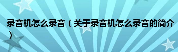 本文關(guān)于錄音機(jī)怎么錄音的簡介就講解完畢,希望對大家有所幫助。
