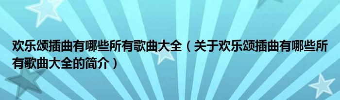 本文關于歡樂頌插曲有哪些所有歌曲大全的簡介就講解完畢,希望對大家有所幫助。