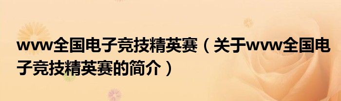 本文關于wvw全國電子競技精英賽的簡介就講解完畢,希望對大家有所幫助。