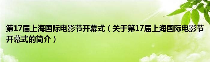 本文關于第17屆上海國際電影節開幕式的簡介就講解完畢,希望對大家有所幫助。