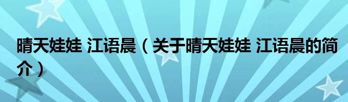 本文關于晴天娃娃 江語晨的簡介就講解完畢,希望對大家有所幫助。