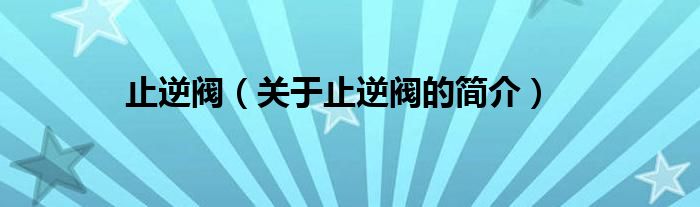 本文關于止逆閥的簡介就講解完畢,希望對大家有所幫助。