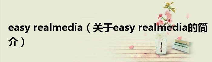 大家好,easy realmedia,關于easy realmedia的簡介很多人還不知道,現在讓我們一起來看看吧!