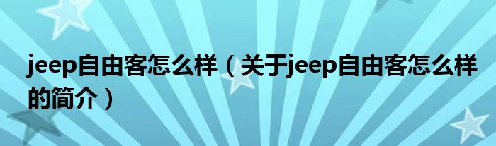 本文關于jeep自由客怎么樣的簡介就講解完畢,希望對大家有所幫助。