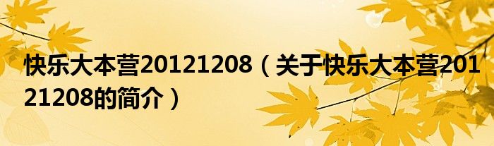 大家好,快樂大本營20121208,關于快樂大本營20121208的簡介很多人還不知道,現在讓我們一起來看看吧!