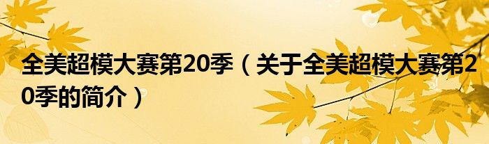 本文關于全美超模大賽第20季的簡介就講解完畢,希望對大家有所幫助。
