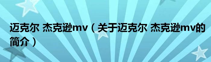本文關于邁克爾 杰克遜mv的簡介就講解完畢,希望對大家有所幫助。