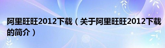 大家好,阿里旺旺2012下載,關(guān)于阿里旺旺2012下載的簡介很多人還不知道,現(xiàn)在讓我們一起來看看吧!