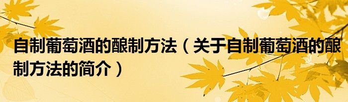 本文關于自制葡萄酒的釀制方法的簡介就講解完畢,希望對大家有所幫助。