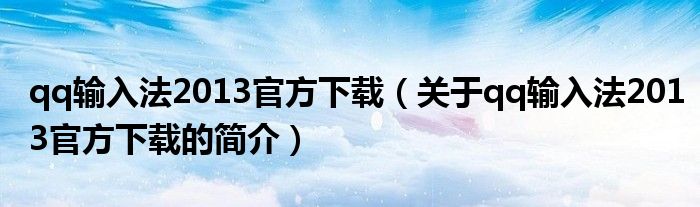 本文關于qq輸入法2013官方下載的簡介就講解完畢,希望對大家有所幫助。