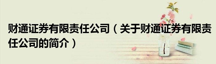 本文關于財通證券有限責任公司的簡介就講解完畢,希望對大家有所幫助。
