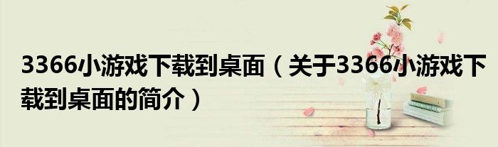 本文關(guān)于3366小游戲下載到桌面的簡介就講解完畢,希望對大家有所幫助。
