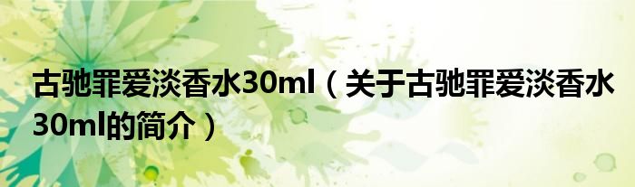 本文關于古馳罪愛淡香水30ml的簡介就講解完畢,希望對大家有所幫助。