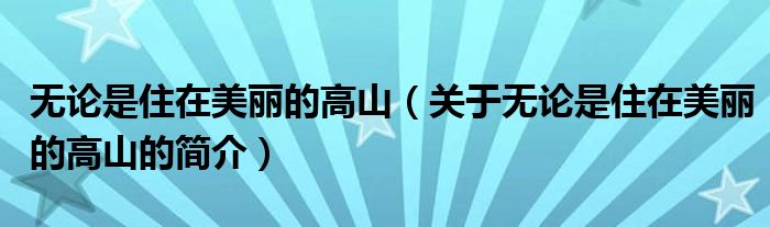 本文關于無論是住在美麗的高山的簡介就講解完畢,希望對大家有所幫助。