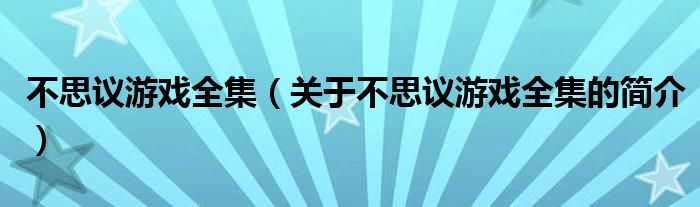 本文關于不思議游戲全集的簡介就講解完畢,希望對大家有所幫助。