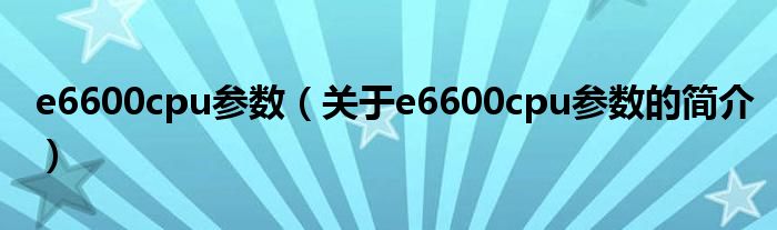 本文關于e6600cpu參數的簡介就講解完畢,希望對大家有所幫助。