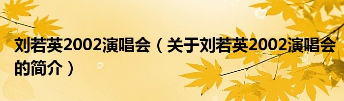 本文關于劉若英2002演唱會的簡介就講解完畢,希望對大家有所幫助。