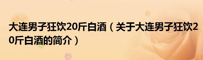 本文關于大連男子狂飲20斤白酒的簡介就講解完畢,希望對大家有所幫助。